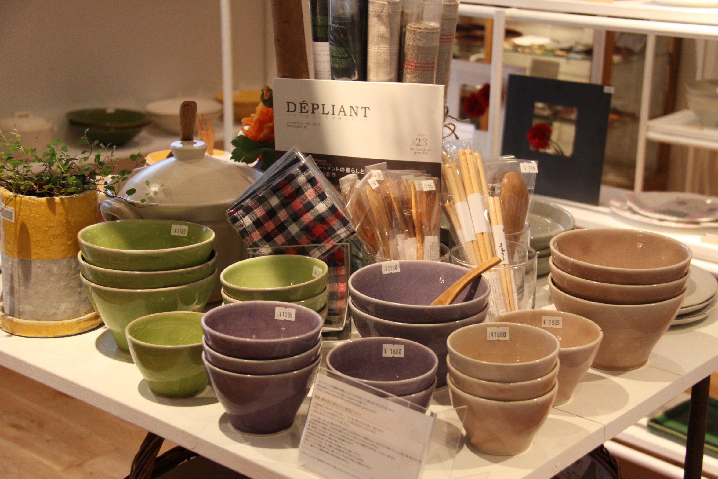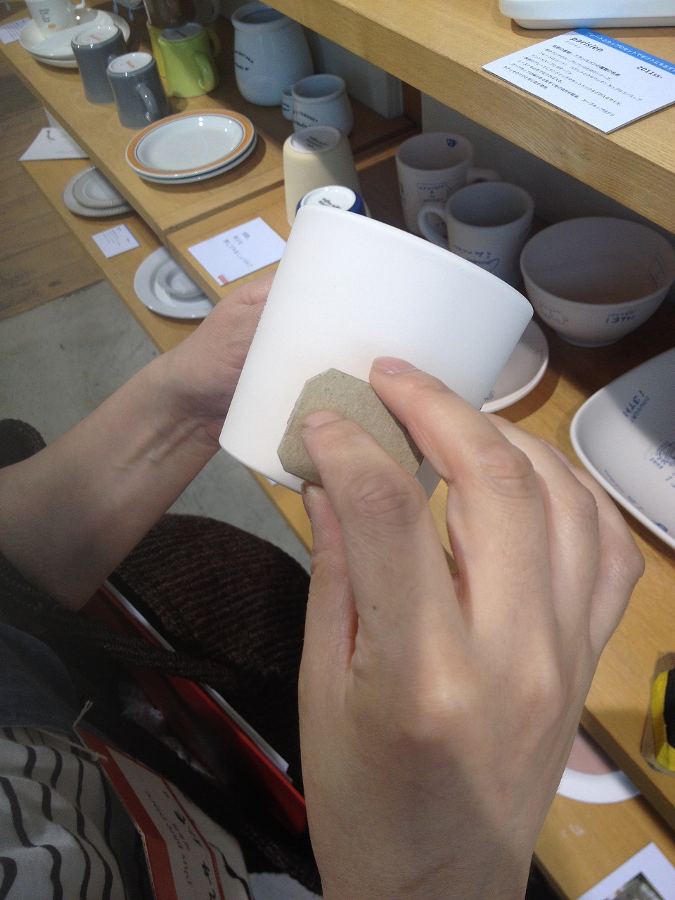 PBP 2013/07/06 スタジオM 展示会 みなさんこんにちは。今日は急に強い雨が降ったりやんだりの梅雨らしい天気?ですね。さて先日PBPではスタッフ皆で、ショップで取り扱いをさせて頂いているスタジオMさんの展示会へ、行ってきました。いつもお世話になっている担当のMさんに器口座をしていただいたり・・・スタンプを使用した絵付けの体験をさせていただいたり・・・これが意外ととってもむずかしい。うつわの名前の由来や意味などをおはなししていただいたり。そしてお昼には、とーってもおいしいランチをいただきました☆目で見て、耳で聞き、そして実際に味わいながらととっても貴重なお勉強をさせていただいたのでした。魅力的な食器たちがたくさんで、ぜんぶ集めたくなるスタジオMの食器。とーっても素敵なスタッフの方たちが作りだすからこそやっぱり素敵な商品たちなんだな・・・と改めて思った一日だったのでした。PBPでも明るい色合いの器など、入荷しております。ぜひお近くにお越しの際は、みなさん遊びに来て下さいね。